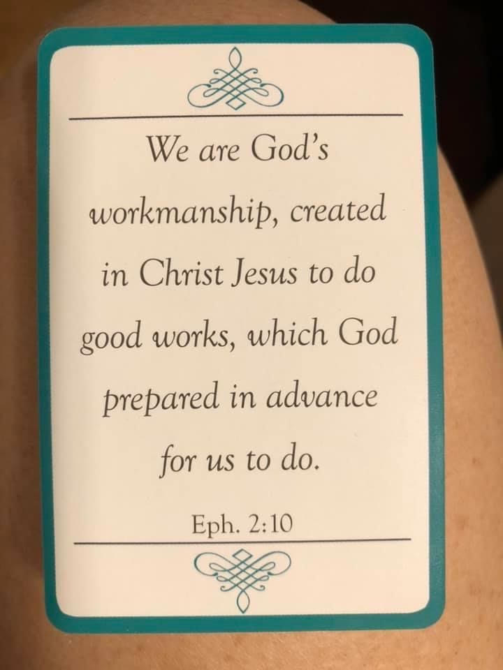 Ephesians 2:10 says that “we are God’s workmanship created in Christ Jesus to do good works, which God prepared in advance for us to do.”